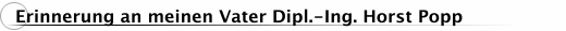 | Am 7. März 2007 wäre unser Vati Horst Popp, "der Alte vom Berge" genannt, 100 Jahre alt geworden. Er wurde am 7. März 1907 in Gräfentonna/Thüringen geboren, hatte ein reiches Leben und viele schöne Jahrzehnte im Kreise seiner geliebten Familie. Ministerialrat i.R. Dipl.-Ing. Horst Popp starb am 19. März 1990 in Bonn. Am 7. März 2007 habe ich, wie fast in jedem Jahr, in Serfaus/Tirol einen Enzian getrunken, mich gemeinsamer Skifahrten und glücklicher Zeiten erinnert und voller Dankbarkeit an unsere Eltern gedacht. Meine beiden jüngeren Brüder - Reiner und Frank - und ich wissen, daß wir gute, liebenswerte Eltern hatten. Sie leben in unserer Erinnerung und unseren Herzen weiter. Trutz - der erstgeborene Sohn Copyright: Trutz.Popp@t-online.de | ![]() | ![]() | |||||||